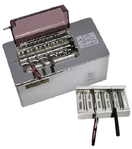※消毒後のレザー及び消毒器内は熱くなっておりますので、